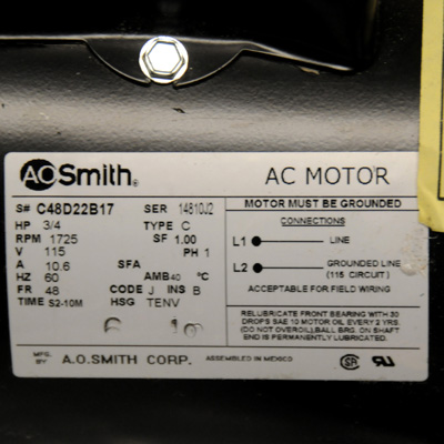 Electric Motors (A. 0. Smith) Open Drive 48 Frame Wired with GFCI Switch